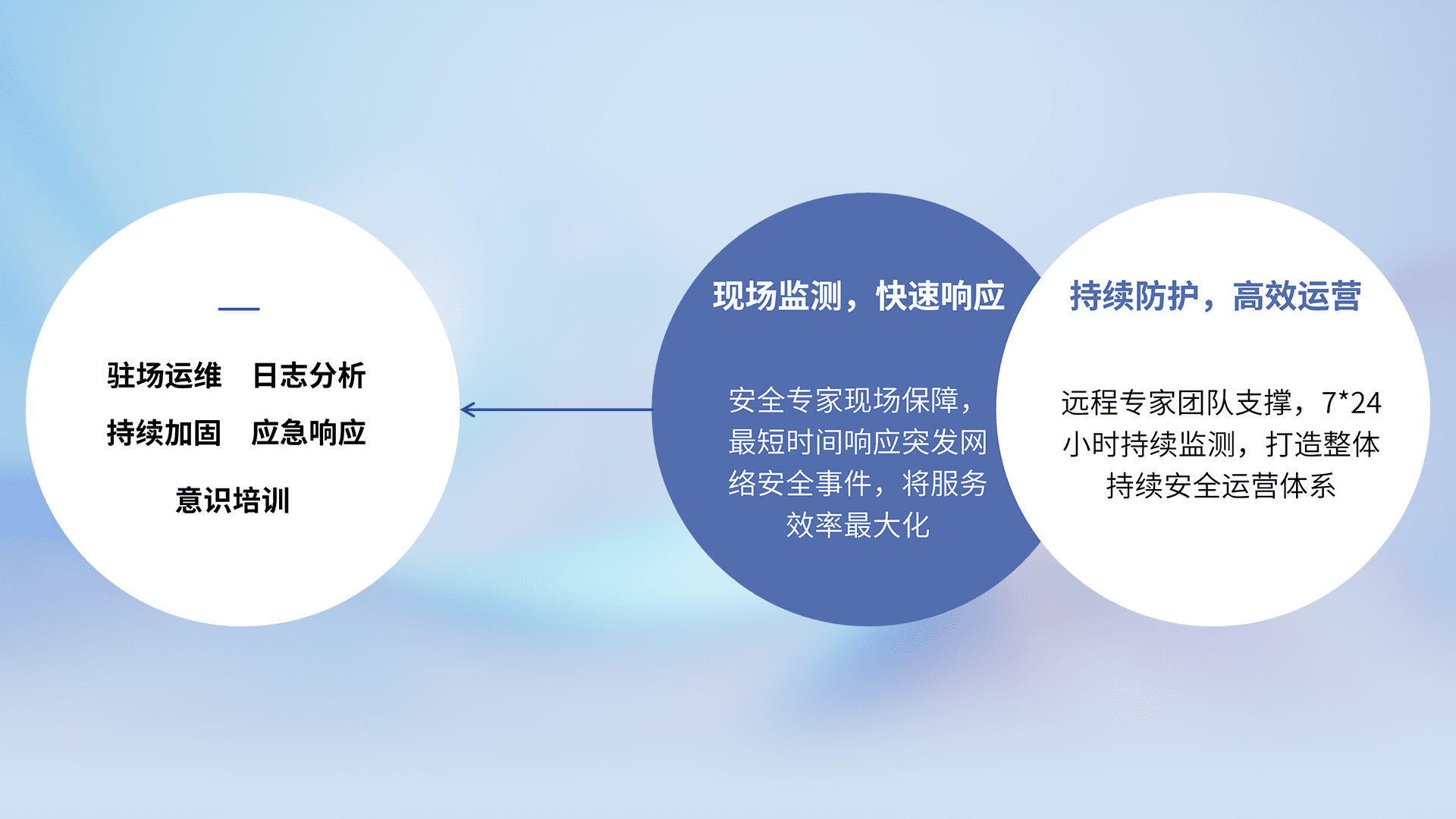 7X24小时持续监测安全事件,保持安全策略有效性,降低资产脆弱性风险,,精准拦截黑客攻击,,,,减少被黑客利用的机会,,,,第一时间遏制,,,降低损失。。。